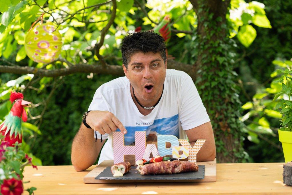 Rozdrtíme česnek a přilijeme olivový olej. Kuřecí prsa rozpůlíme a naklepeme paličkou na maso. Prsa potřeme olivovým olejem a poklame na něj bazalku a zatočíme je jako roládu a zabalíme do folie. Na další folii rozložíme slaninu vedle sebe podle šířky rolády a na střed ještě položíme podélně dva plátky slaniny. Roládu rozbalíme z folie a položíme na dva podélné plátky a pomocí folie zabalíme. Roládu dáme na půl hodiny do lednice. Roládu vyndáme z folie a grilujeme.